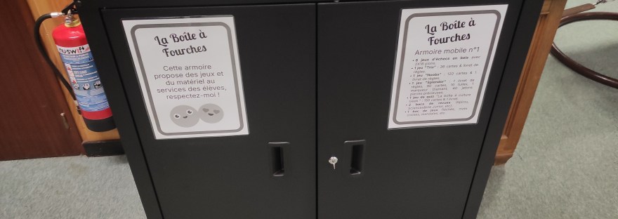 Comme vous le découvrirez sur ces photos, les deux armoires pédagogiques pour les heures de fourche des classes du 1er degré (1C et 2C) sont prêtes. Elles sont mises en circulation depuis fin novembre de cette année avec des jeux d'échecs, des jeux Trio-Noobs-Splendor-Quiz, des revues et des mandalas, mots croisés, sudoku,... C'est une aide… Lire la suite Les boîtes à fourches sont arrivées !