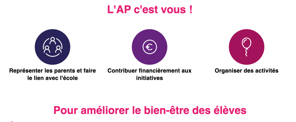 L’ensemble des parents sont invités au moins une fois par an, en début d’année scolaire, à une assemblée générale. L’assemblée générale, notamment :