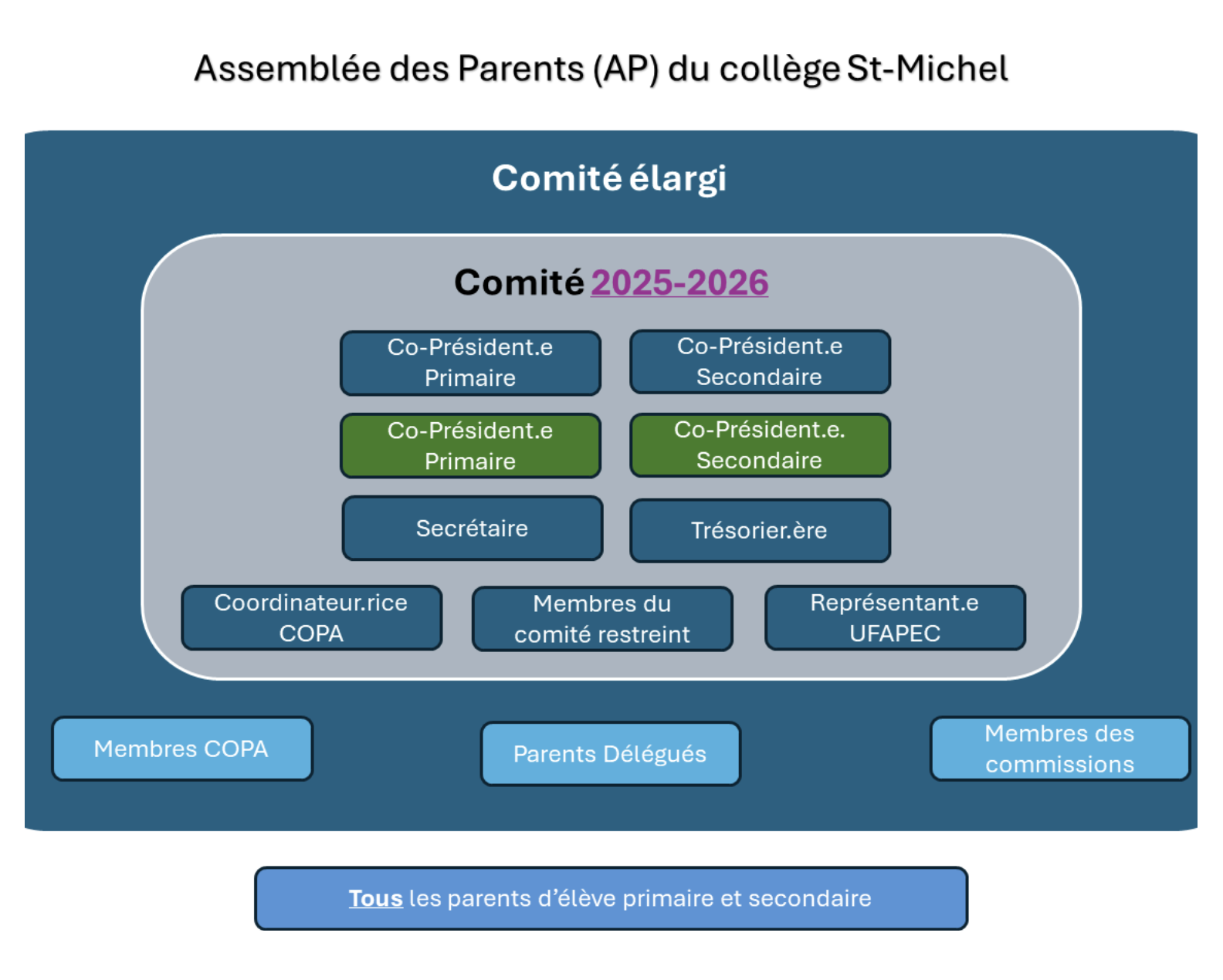 À la suite de l’AG du 14/10/2025, la composition du comité de l’AP a été validée. Il se présente désormais comme suit :